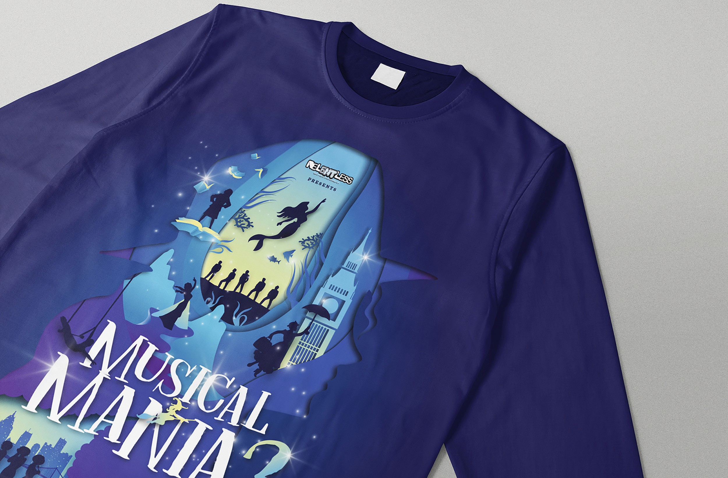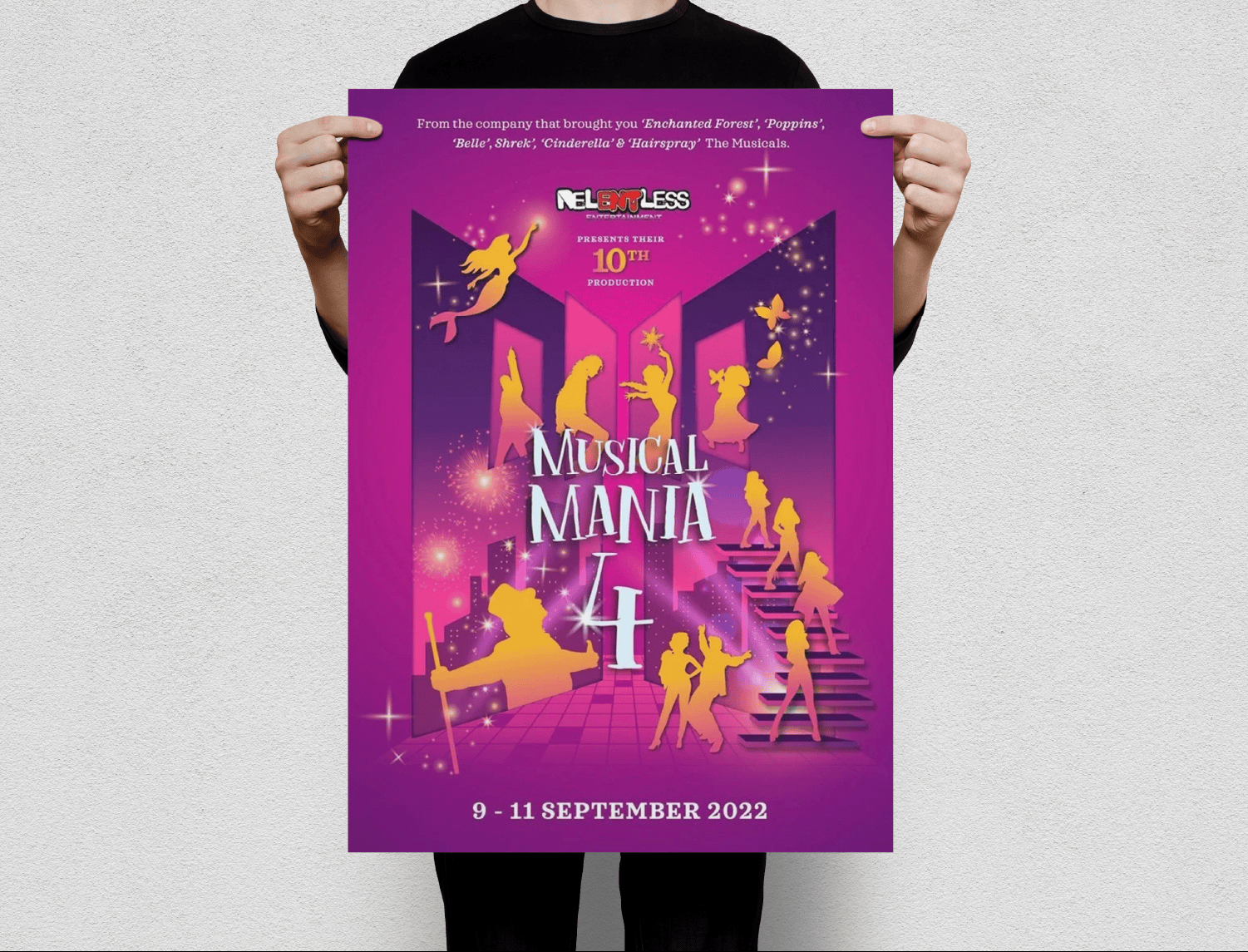 A series of promotional artworks created for a musical production showcasing a curated collection of songs and dance numbers from well-known musicals, performed by local talents from Relentless Entertainment Brunei.
